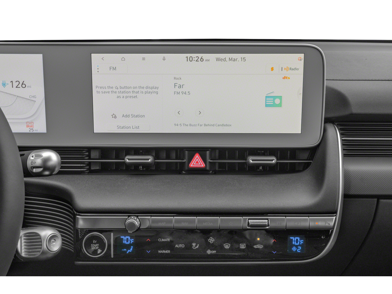 - Radio: AM/FM/SiriusXM/HD Display Audio System -inc: 12.3" color touchscreen, navigation w/EV technology, 6 speakers, Android Auto and Apple CarPlay, BlueLink connected car system, vehicle Wi-Fi hotspot, Bluetooth® w/phonebook transfer; Hyundai Pay; dynamic voice recognition and USB input